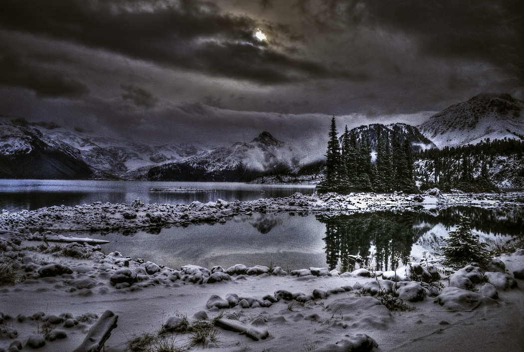 Here’s an example: the image was a composite of 5 handheld shots in the Coast Range of British Columbia with a D300s, 18-55 DX lens and is titled “Don’t forget your down jacket”……..