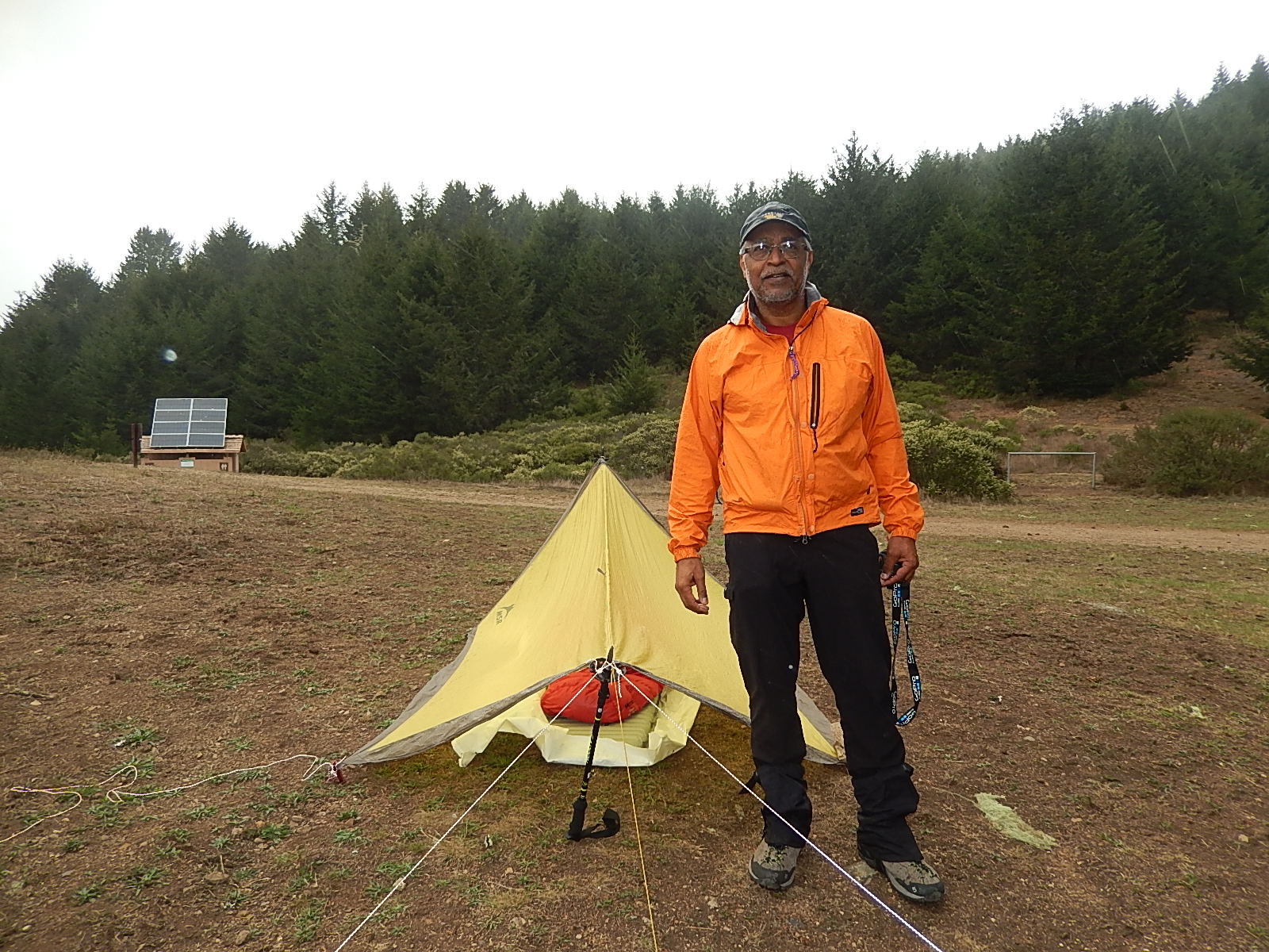 Rained out of camp on Mt Wittenburg in Pt Reyes National Seashore this afternoon, but had a lot of fun… used the MSR E-wing tarp instead of a tent, and a Vargo Titanium Decagon stove to burn alcohol. Nice hike with views of Drake’s Bay to the west. The reconstituted beef stroganoff was good.