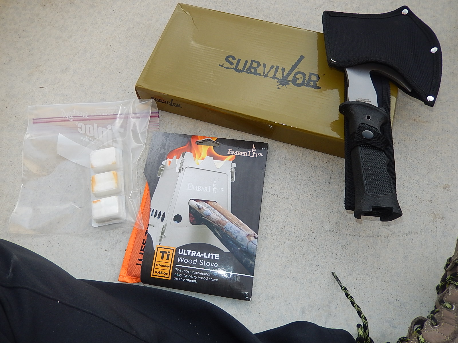 I’ve chosen the 17.5 oz M Tech Survivor hatchet and the Utah-made, Emberlit Ultralight titanium stove to begin burning wood for fuel in selected, legal areas. No plans to use these to any extent in southern CA where fire risk is usually so high, unless restricted to particular situations where I feel very confident that risk can be managed.