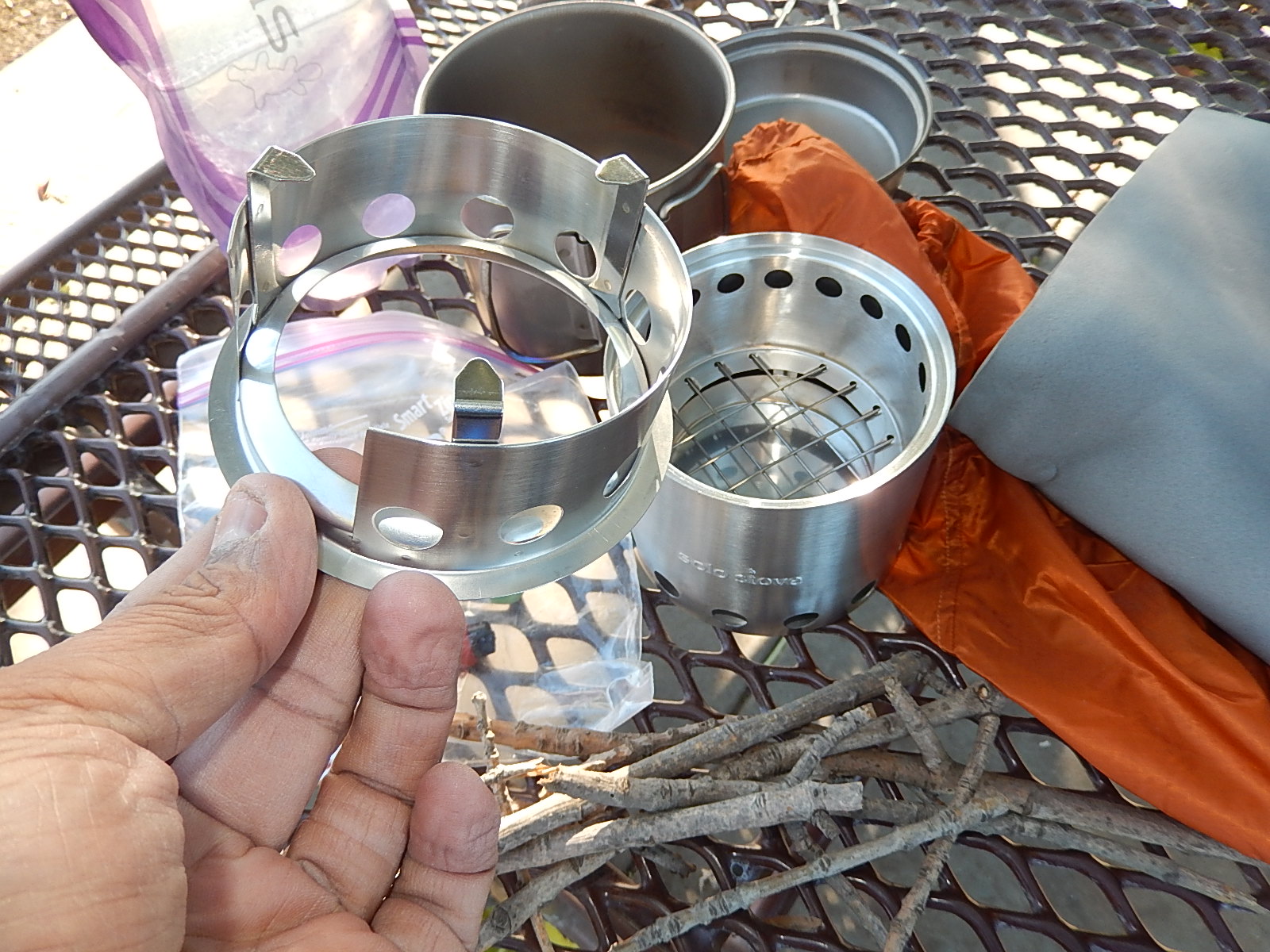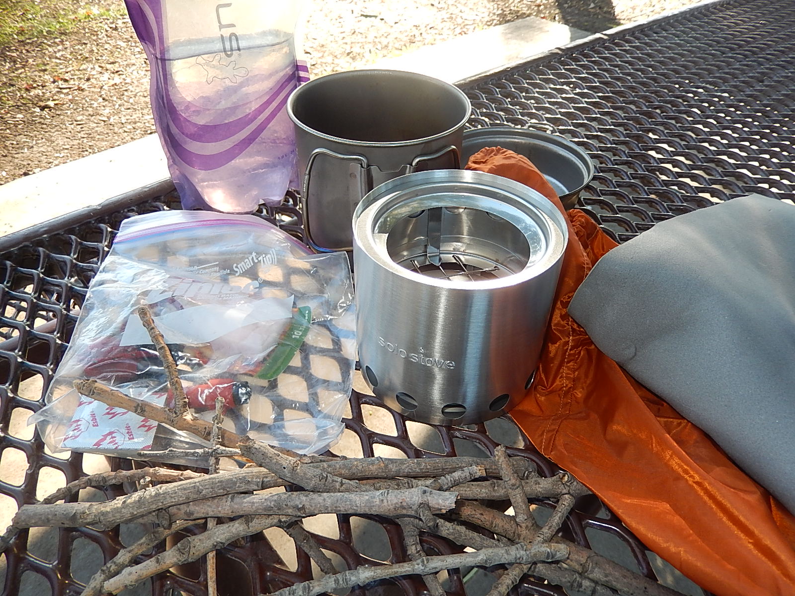 So no fuel needs to be carried; can’t run out of fuel (in the proper terrain); both store very compactly. The Emberlit is 5.4 oz and packs completely flat, the Sol is 9 oz and it fits into my cook pot needing no assembly.