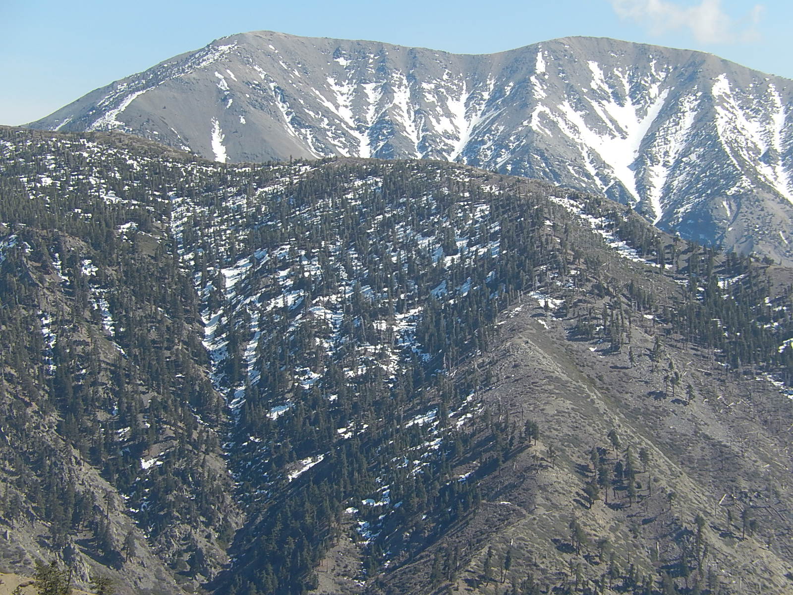 Climate Change in Southern CA: north Face Mt San Antonio 10,064′ from Blue Ridge Road