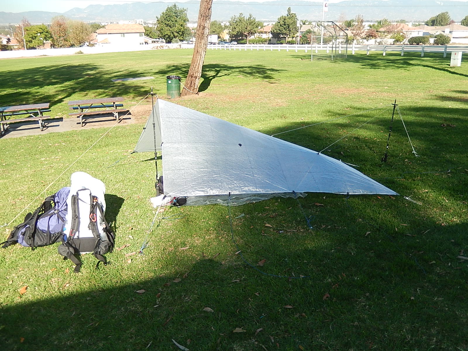 Light winds, clear with patchy clouds, about 30 deg air temperature…. sweet. If I didn’t have to work this evening……and I ‘ll be sure to bring bright wands to mark the location of this tarp in winter, since it blends with snow environments.