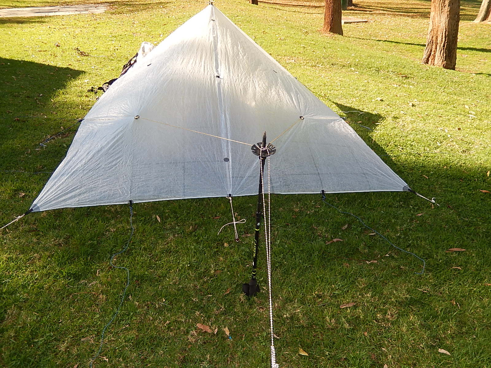 DSCN1658 DSCN1659 DSCN1660 DSCN1661 DSCN1664 DSCN1665These shots demo my default tarp setup: storm mode, with 2 long guylines on the rear panel anchors staked through the back trekking pole.